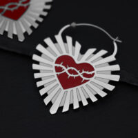 Diese einzigartigen Ohrringe im Sacred Heart Design sind eine wunderschöne Fusion aus Spiritualität und modernem Style. Die Ohrringe nehmen die klassische Herzform auf und verleihen ihr mit einem auffälligen Detail einen kraftvollen Ausdruck. Im Inneren des Herzens befindet sich ein intensives rotes Herz, das in der Mitte von einem feinen Stacheldraht umschlungen wird – ein symbolträchtiges Motiv, das sowohl für Stärke als auch für Schutz steht.