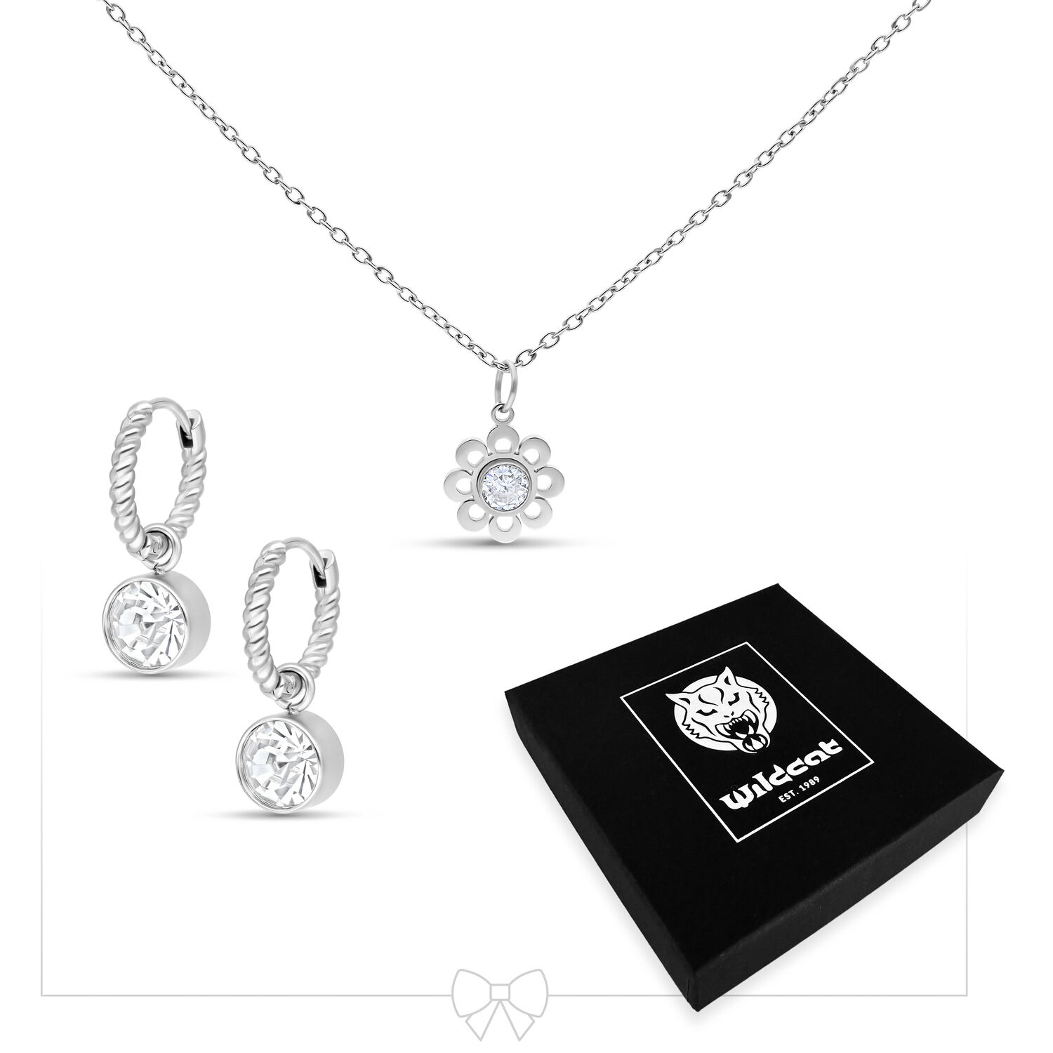 Crystal Flower Necklace with Hoops – Geschenkset