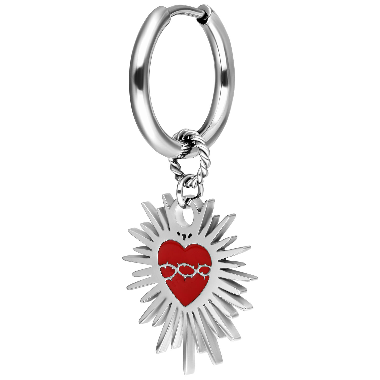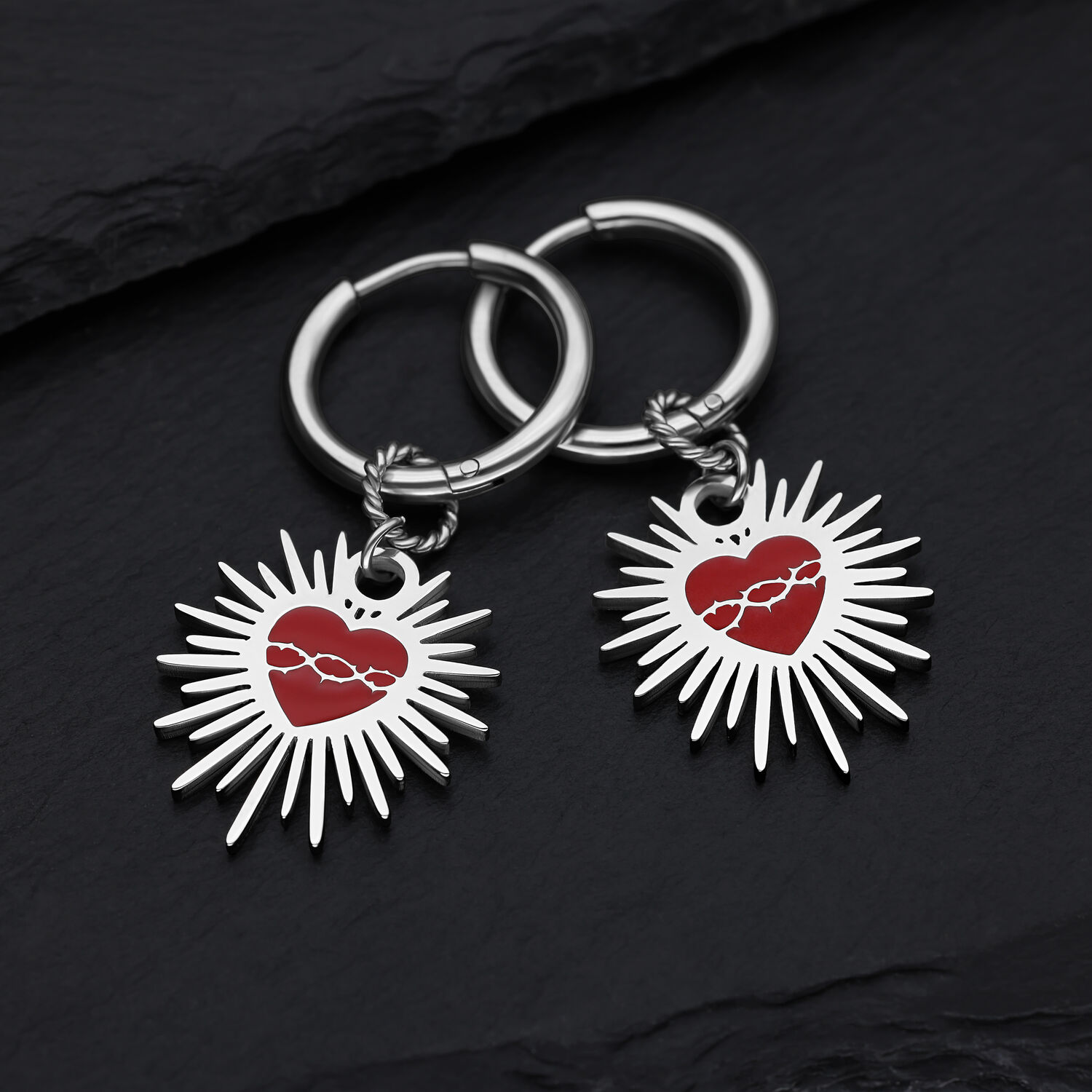 Enamel Sacred Heart Barbed Wire Hoops – Paar