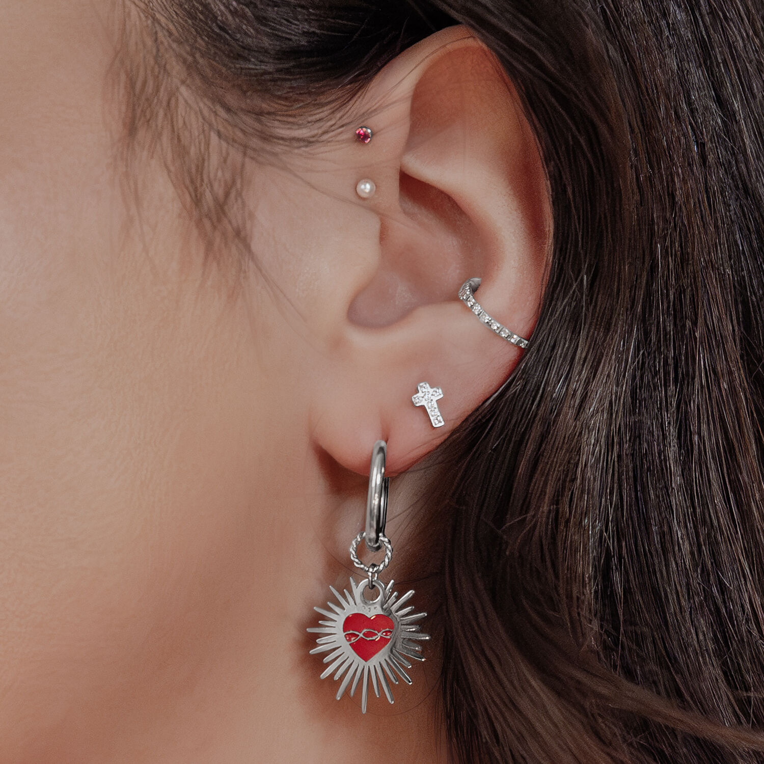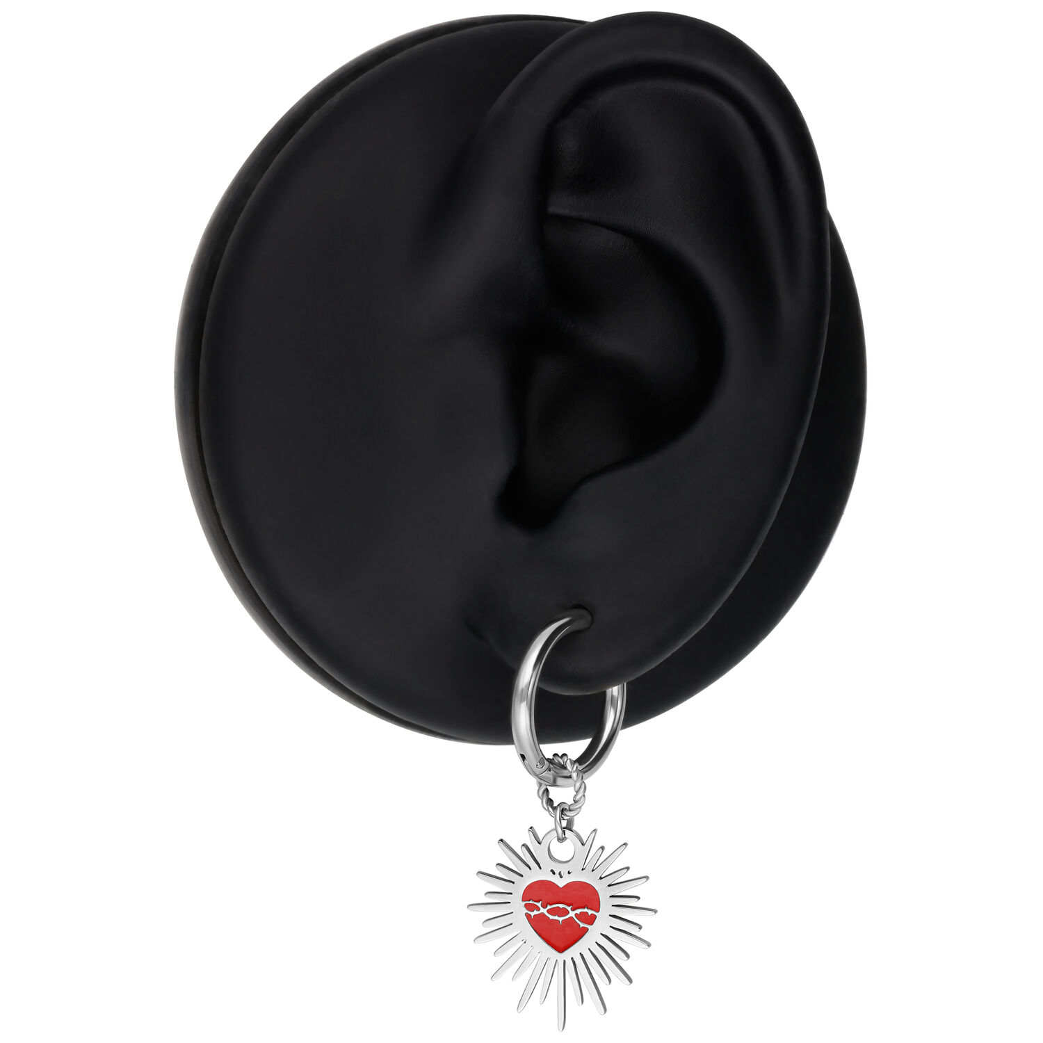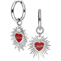 Diese besonderen Hoops im Sacred Heart Design sind eine moderne Hommage an Romantik und Stärke. Das ikonische Herz in leuchtendem Rot ist von feinen Dornen umrahmt – ein Symbol für Hingabe, Schmerz und die Kraft der Transformation.