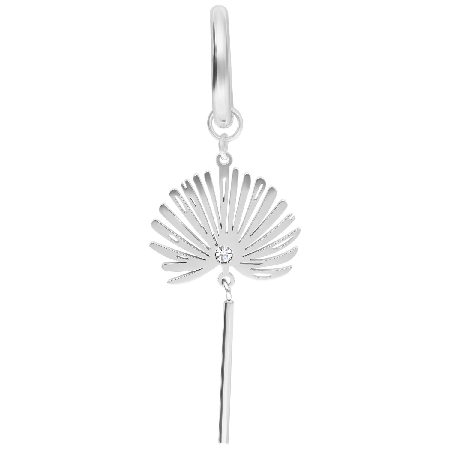 Diese Creolen aus hochwertigem Edelstahl begeistern mit einem fein ausgestanzten Anhänger in Form eines stilisierten Petticoat-Blattes. Ein funkelnder Zirkoniastein in der Mitte verleiht dem Design einen Hauch Glamour, während das schmale, längliche Element darunter für elegante Bewegung sorgt. Die Kombination aus luftiger Leichtigkeit und glänzender Präzision macht diese Ohrringe zum perfekten Begleiter für sommerliche Styles, festliche Auftritte oder deinen persönlichen Signature-Look.