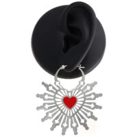 Diese einzigartigen Ohrringe vereinen kraftvolle Symbolik und kunstvolles Design. Im Zentrum der Sacred Heart Hoops befindet sich ein leuchtend rotes Herz, das die Leidenschaft und Liebe des Heiligen Herzens symbolisiert. Von diesem Herz aus entfaltet sich ein elegantes Muster, das an die kunstvollen Glasfenster einer Kirche erinnert – filigrane Linien und Details, die eine Verbindung zwischen spiritueller Tiefe und modernem Stil herstellen.