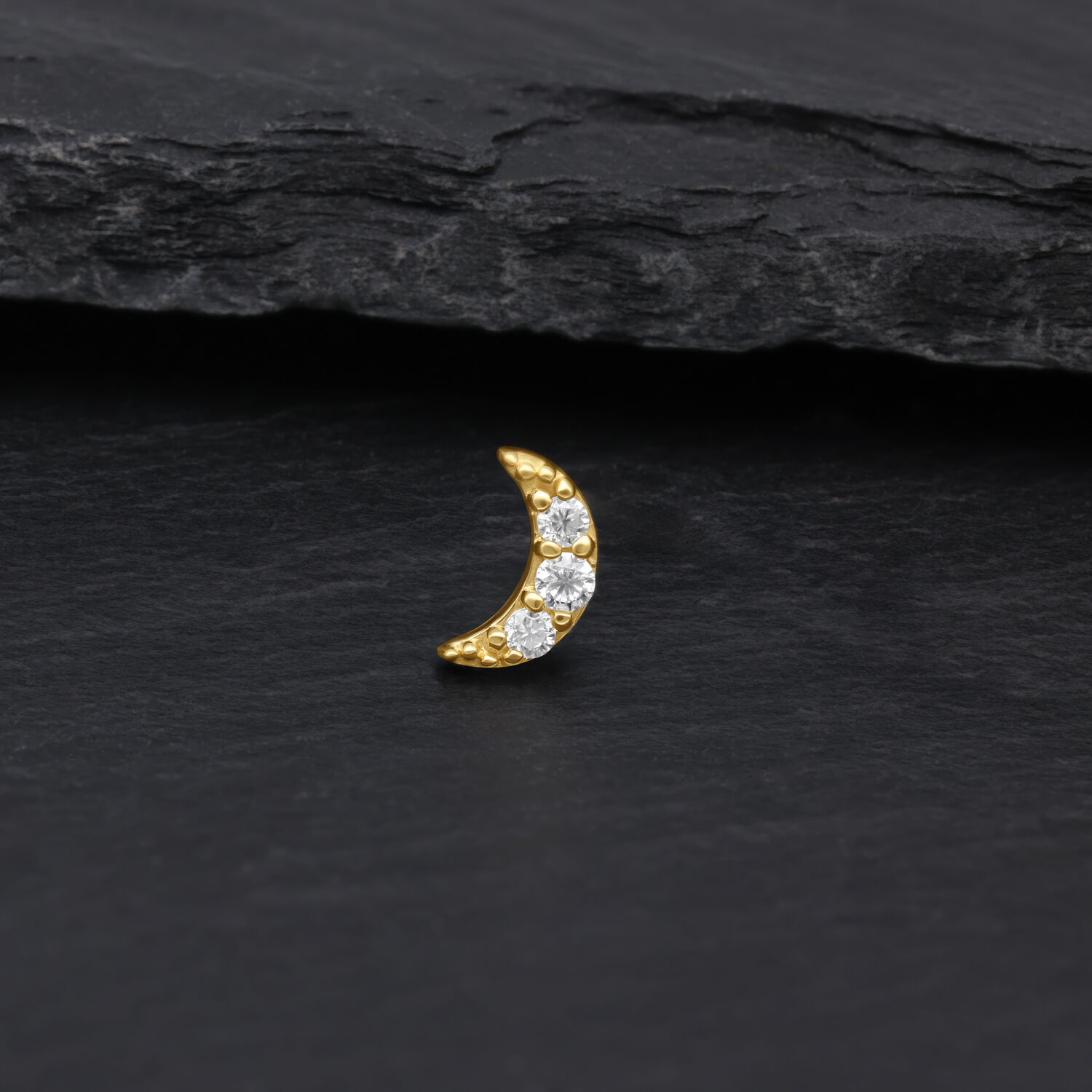 Dank des Push-Fit-Systems lässt sich der Aufsatz leicht einsetzen und sicher tragen – ganz ohne Schraubgewinde. Ideal geeignet für verschiedene Piercingstellen wie Helix, Lobe, Tragus oder Conch, wo das Mond-Design jedem Look eine dezente, luxuriöse Note schenkt.