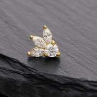 Der 14K Perfect Fit Moissanit Lotus Attachment steht für luxuriöse Eleganz und symbolische Schönheit. Gefertigt aus poliertem 14-karätigem (585er) Gelbgold, besticht dieser edle Piercingaufsatz durch sein fein gearbeitetes Lotus-Design – ein Symbol für Reinheit, Stärke und innere Balance.