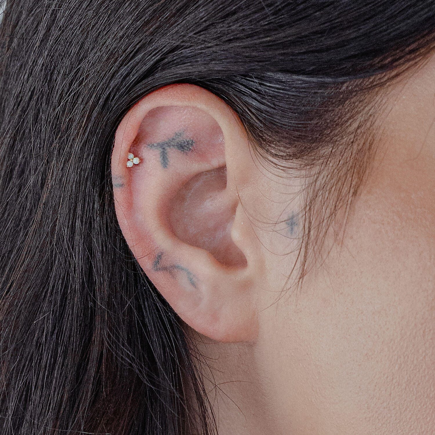 Das Trinity Opal Attachment aus der Wildcat Kollektion vereint edles 14-karätiges (585er) Gelbgold mit einem strahlenden synthetischen Opal in einem stilvollen Dreier-Design. Speziell für das Perfect Fit Labret (14K) gefertigt, besticht dieses Schmuckstück durch seine elegante Schlichtheit und das faszinierende Farbenspiel des Opals. Mit einem Durchmesser von 3.5 mm und einem Gewicht von nur 0.07 g ist es ideal für alle, die dezenten und hochwertigen Piercingschmuck lieben.