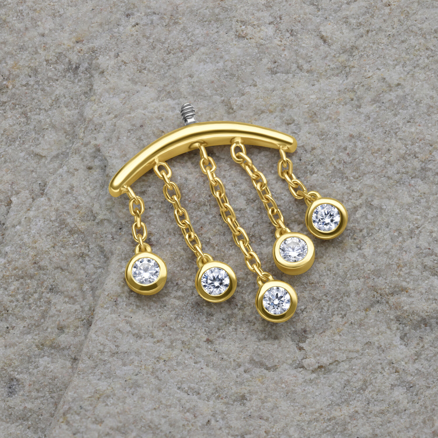 Du bist auf der Suche nach exklusivem und luxuriösem Piercingschmuck zum Verschenken und zum Verlieben? Dann bist du genau richtig hier, denn unsere Wildcat Kollektion bietet euch alles was man sich an hochwertigen Edelmetallen wünscht. Unser Internally Crystal Drops Hidden Helix Attachmentbesteht aus edlem, 18-karätigem (750er) Gelbgold. Das Internally Gewinde besteht aus 316L Chirugenstahl.