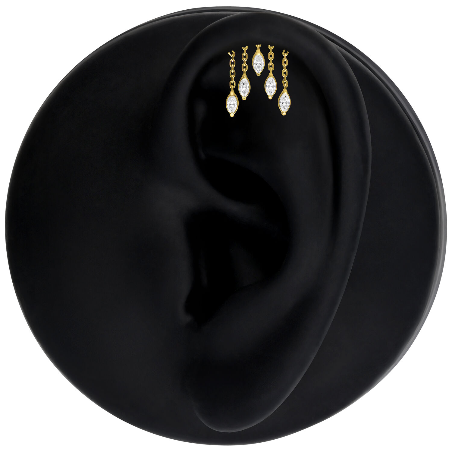 Du bist auf der Suche nach exklusivem und luxuriösem Piercingschmuck zum Verschenken und zum Verlieben? Dann bist du genau richtig hier, denn unsere Wildcat Kollektion bietet euch alles was man sich an hochwertigen Edelmetallen wünscht. Unser Internally internally Oval Crystal Drops Hidden Helix Attachment besteht aus edlem, 18-karätigem (750er) Gelbgold. Das Internally Gewinde besteht aus 316L Chirugenstahl.