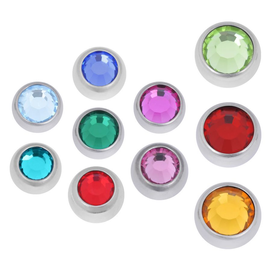 Kristallfarbe: Dunkelblau, Dunkelrot, Fuchsia, Hellblau, Hellgrün, Orange, Rosa, Rot, Smaragdgrün, Zirkonblau