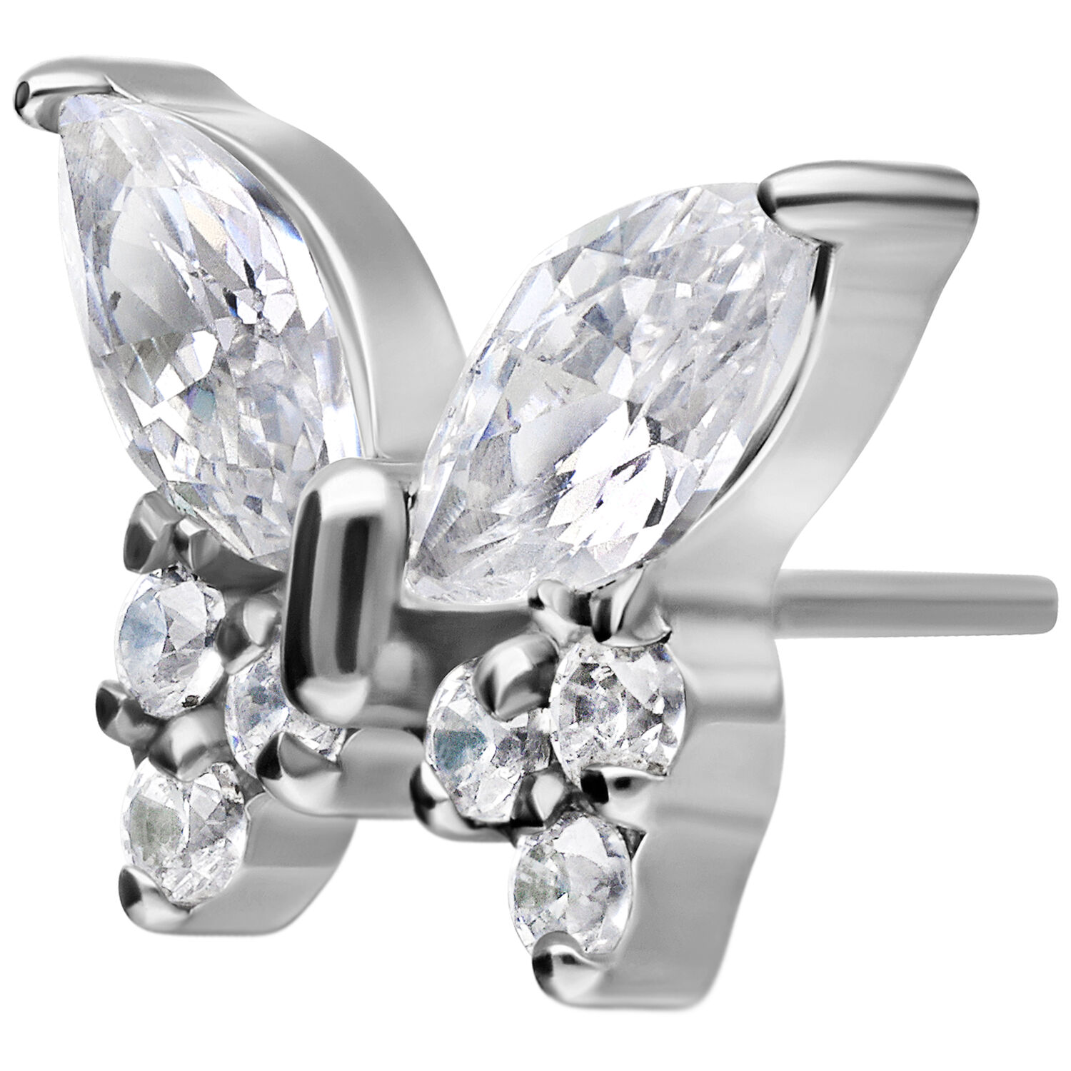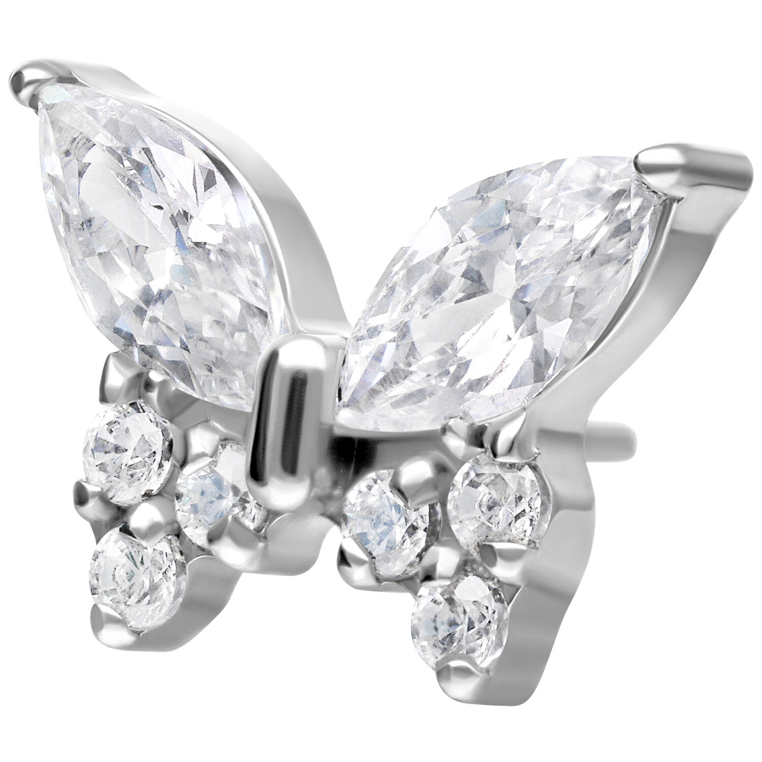 Unser Push Fit Multi Jewelled Butterfly Aufsatz verleiht deinem Ohr ein glänzendes Finish im süßen, sommerlichen Stil. Wir lieben diesen Look, der eine frische Abwechslung bietet und sich perfekt kombinieren lässt! Die oberen Flügelhälften des Schmetterlings bestehen aus zwei großen Kristallen, während die unteren Flügelhälften mit jeweils drei kleinen Kristallen besetzt sind. Zusammen bilden sie harmonisch den Körper des Schmetterlings – ein einzigartiger Eye-Catcher, der deine Individualität stilvoll unterstreicht. Setze mit diesem Push Fit Aufsatz einen ganz besonderen Akzent.