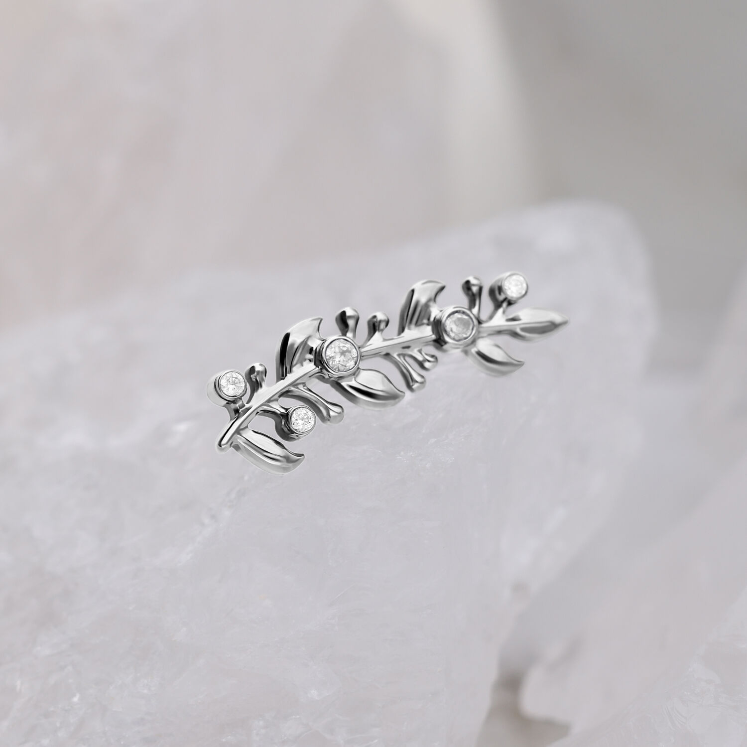 Der Winter Branch Aufsatz verleiht deinem Piercing einen dezenten, naturinspirierten Winterlook. Das feine, verzweigte Design erinnert an zarte, vereiste Äste und sorgt für ein subtil funkelndes Highlight. Die klaren Linien und die filigrane Struktur machen den Aufsatz zu einem eleganten Detail, das perfekt in die Winterzeit passt – gleichzeitig aber auch ganzjährig getragen werden kann.