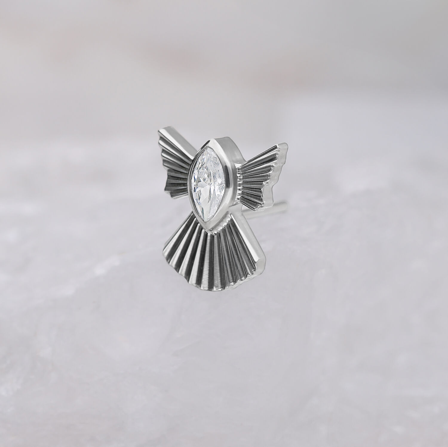 Der Winter Snow Angel Aufsatz verleiht deinem Piercing eine zarte, winterlich inspirierte Eleganz. Das feine Engelsdesign fängt das Licht wunderschön ein und sorgt für ein sanftes, frostiges Funkeln. Gefertigt aus hochwertigem Titan Grad 23 (G23) ist der Aufsatz besonders hautfreundlich und perfekt für den täglichen Gebrauch geeignet.