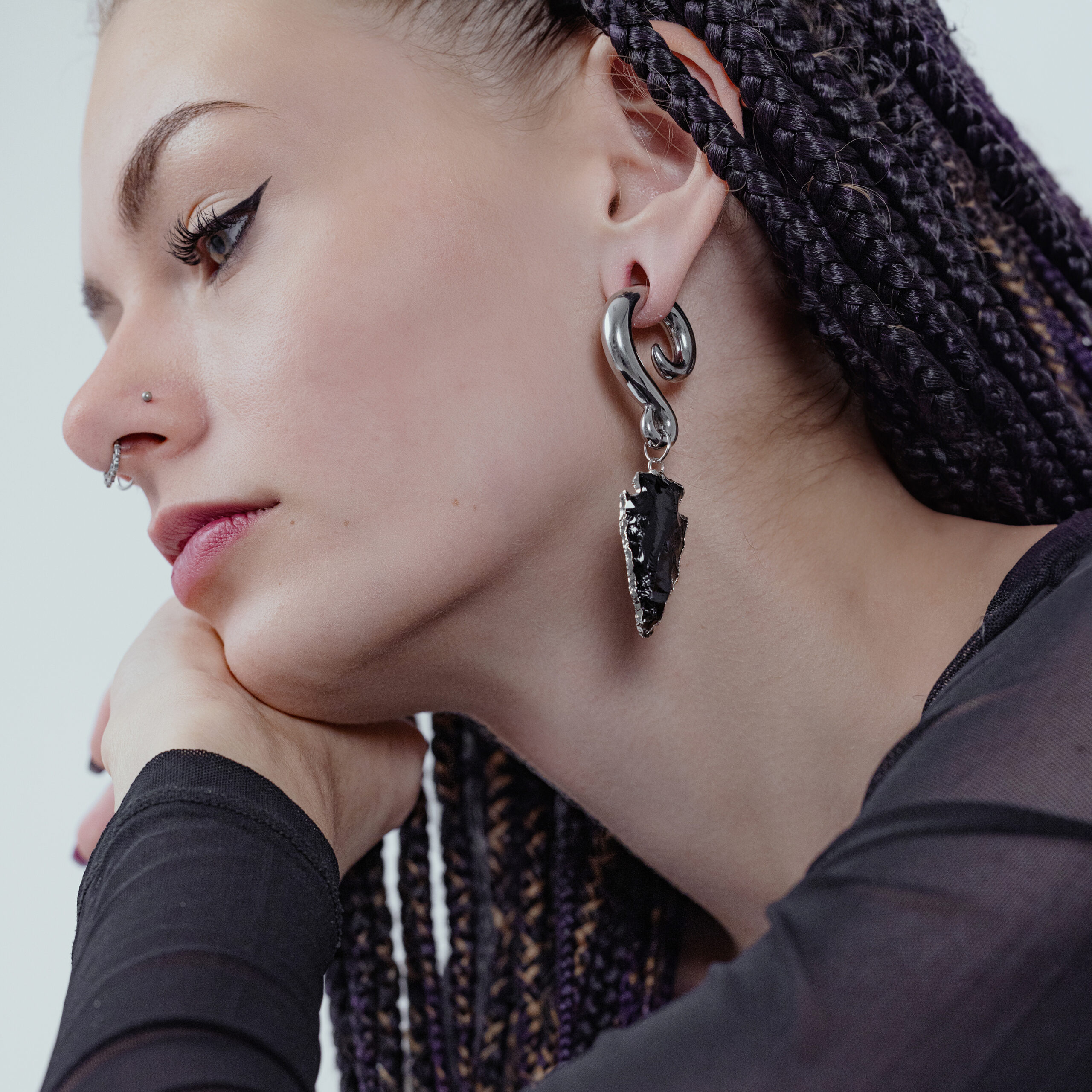 Entdecke jetzt unsere wunderschönen Naturstein Earweights mit schwarzem Obsidian Stone Anhänger.