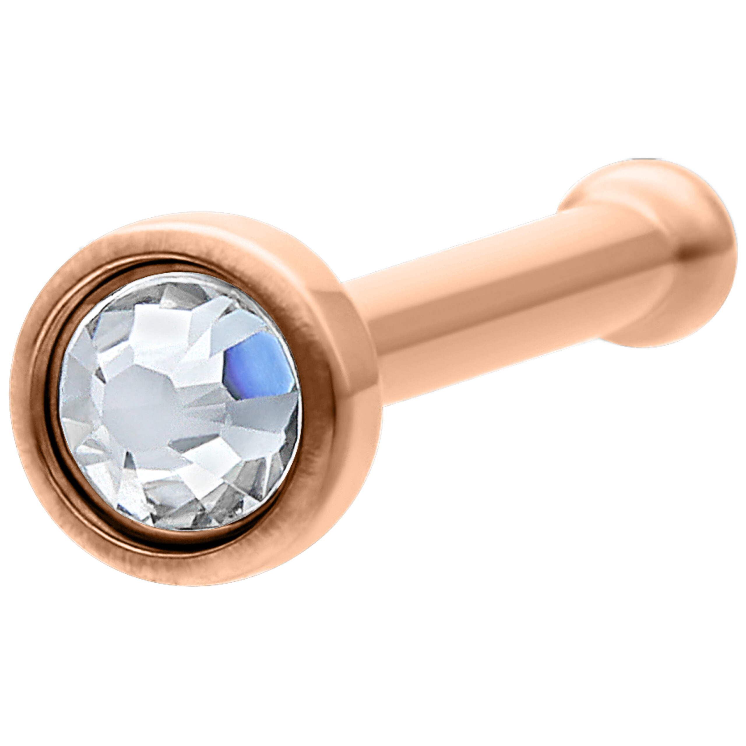 Der Mini Jewelled Nostril Stud der Titan Rosegoldline ist der unauffällige und edle Stecker für Deine Nase. Sein hochwertig verarbeiteter Kristall sorgt für glitzernde Highlights. Dank seines Kugelstoppers bleibt er felsenfest an seinem Platz, kann aber auch ohne Probleme wieder entfernt werden.