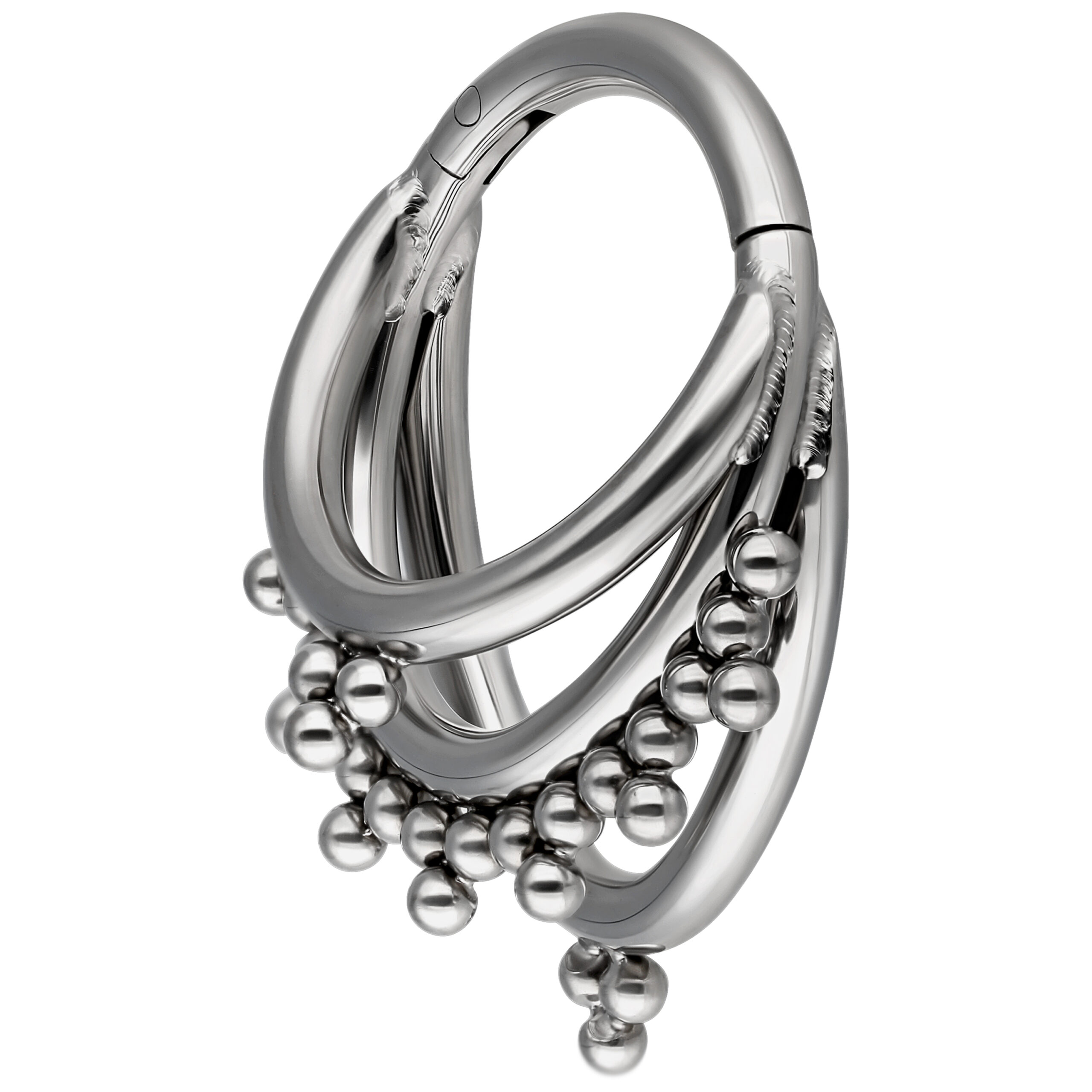 Du suchst ein besonderes Piercing, dass dich ganz ohne Glitzer überzeugt? Dann ist unser Triple Oriental Clicker genau das Richtige für dich! Ob im Alltag oder zu besonderen Anlässen – dieser Titan Clicker bringt einen Hauch orientalischer Schönheit in deinen Look. Gönn dir ein Accessoire, das deinen Stil unterstreicht und dich strahlen lässt – ganz ohne Bling-Bling!