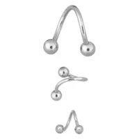 Die Spiral ist in der Stärke 1.2 mm mit einem Innendrurchmesser von 8.0 mm und zwei 4.0 mm-Kugeln verfügbar. In der Stärke 1.6 mm gibt es sie mit den Innendurchmessern von wahlweise 10.0 oder 12.0 mm, jeweils mit zwei 5.0 mm-Kugeln.