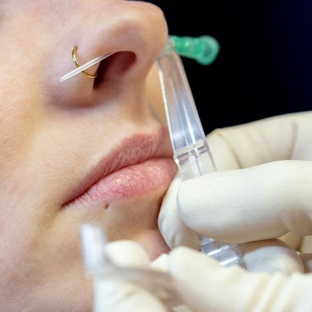 Ergonomische Form für Kontrolle, Präzision und angenehmes Arbeiten.Piercing Ablauf mit Septum Zange