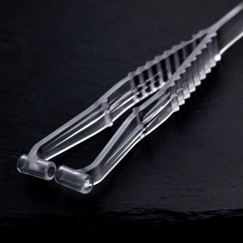 Die Septum-Zange verfügt über einen integrierten Kanal, durch den die Nadel geführt wird. Das sorgt für eine kontrollierte, sichere Führung.