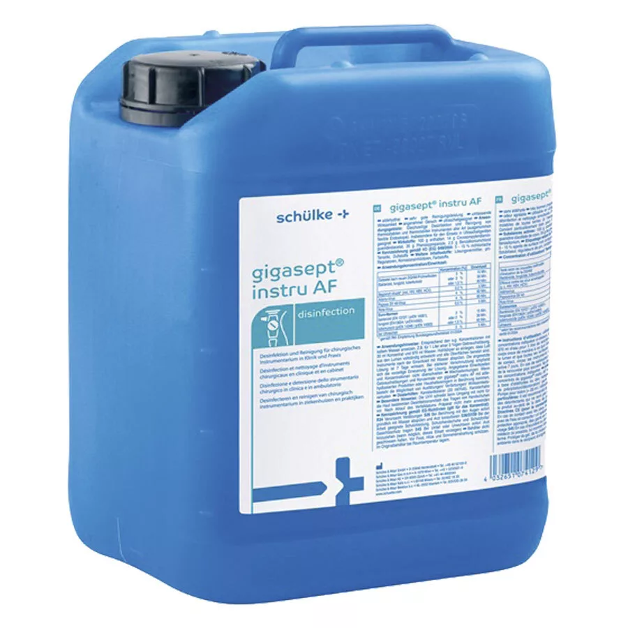 Schülke gigasept® instru AF ist ein aldehydfreies Kombinationspräparat für die manuelle Desinfektion von Instrumenten aller Art. Es erfüllt die aktuellen DGHM-Richtlinien und Euro Normen für sehr gute hygienische Reinigungsleistung und hat einen angenehm frischen Geruch. Für die manuelle desinfizierende Vorreinigung und manuelle Desinfektion von thermostabilem Instrumentarium aller Art (ausgenommen flexible Endoskope). Aufgrund der hervorragenden Reinigungsleistung – insbesondere im Ultraschallbad- und der umfassenden mikrobiologischen Wirksamkeit gegen Bakterien, Pilze und Viren (inkl. HIV, HBV, HCV) bietet gigasept® instru AF alle wichtigen Produkteigenschaften für die Instrumentenaufbereitung in Klinik und Praxis.